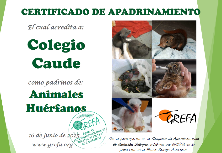 - Certificado con el nombre del centro educativo y la foto y nombre del animal.