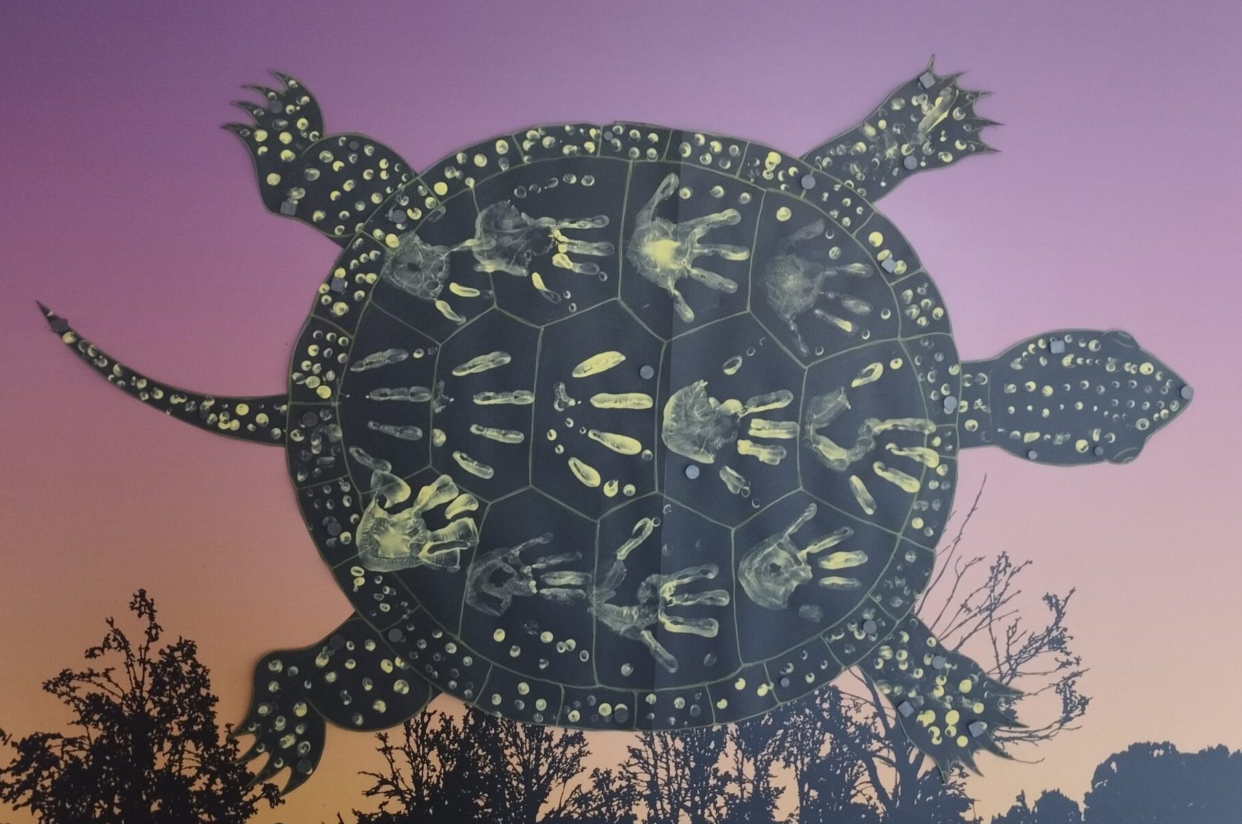 El lunes 13 de octubre ha venido a visitarnos un grupo de 14 niños de la Asociación EOF. Esta asociación trabaja para dar atención integral a infancia y adolescencia en situación de vulnerabilidad social. Al terminar la visita, aprovechando que esta es la semana de los Erasmus Days, les propusimos hacer una pequeña actividad colaborativa para poder dar visibilidad al galápago europeo. Nosotros habíamos pintado la figura de un galápago europeo en una cartulina negra grande, sin embargo le faltaban sus motas y líneas amarillas características. Los niños mojaron sus manos en pintura de dedos amarilla y recrearon con sus manos esas míticas manchas en su caparazón. Actualmente exponemos para todas las visitas su pequeña creación en uno de los pasillos de GREFA.