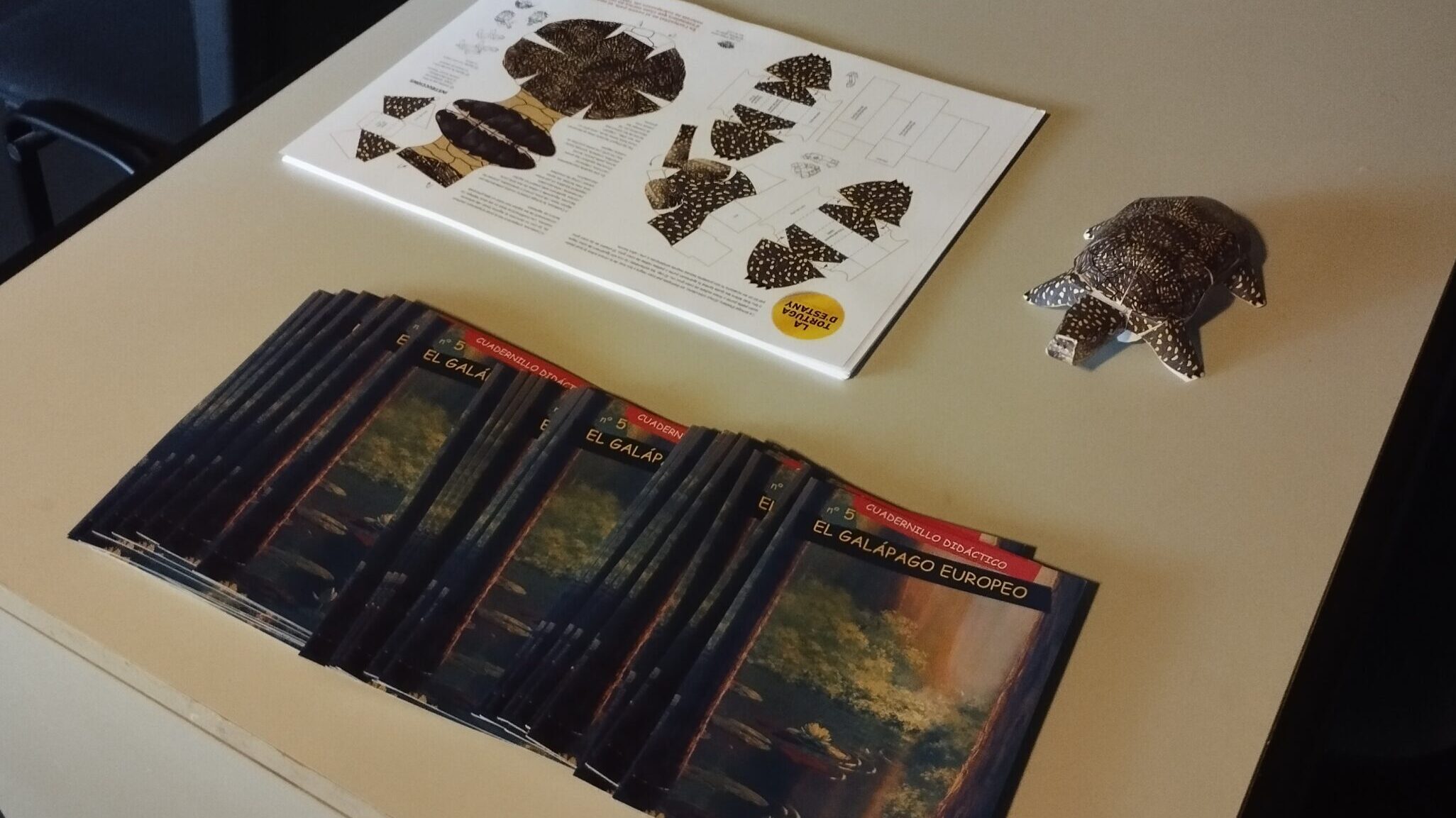 Durante estas jornadas formativas se trataron varios proyectos de conservación, entre los cuales se encontraba el galápago europeo. Rubén Darío Rojas, responsable del departamento de cría en cautividad, nos dio una charla sobre algunas características de esta especie y cómo es el proceso de cría en el hospital. Además, también compartimos con ellos cuadernillos sobre el galápago y una plantilla para poder construir una maqueta de papel sobre él.